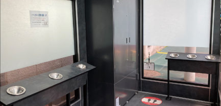 壁と屋根で覆われた小屋のようなタイプ。エアコンを設置すれば快適性が増し、内部の空気をフィルタで浄化してから排出する機能を持たせることで、周囲への影響を最小限に抑えられます。