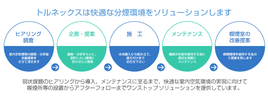 株式会社トルネックスは、飲食店の様々な条件に合わせた分煙ソリューションを提供しています。