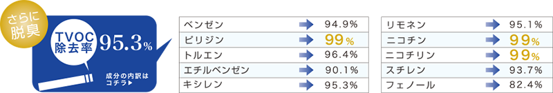 法令基準をクリアする強力な脱臭性能