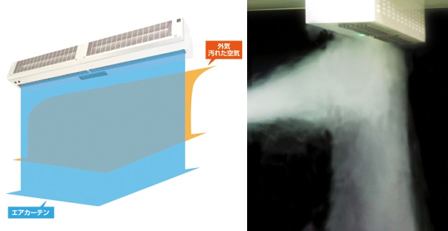 エアカーテンは、ビニールカーテンに代わる、より高度な煙漏れ対策として多くの施設で導入されています。