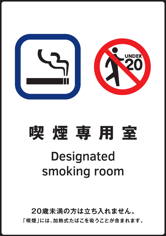 屋内喫煙室を設置する場合、改正健康増進法により、施設の管理者には特定の標識(ステッカー等)を掲示する義務があります。