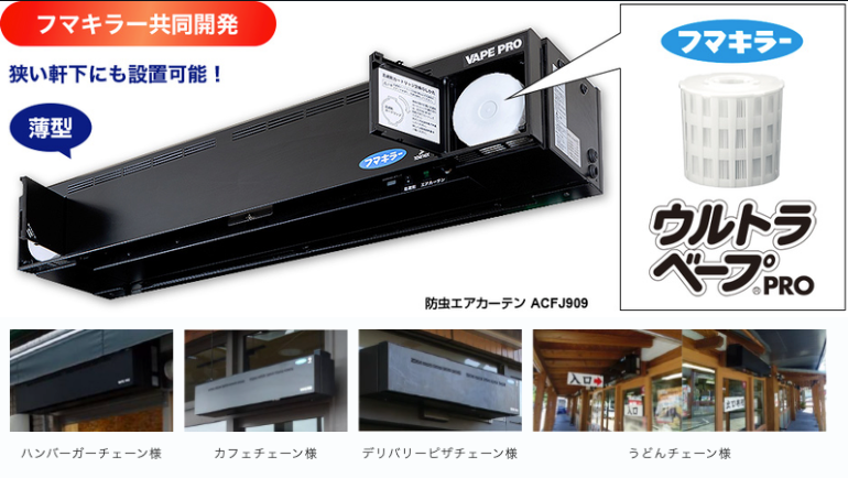 このシステムの特筆すべき点は、エアカーテンの周辺半径3メートルの範囲を「虫が寄り付かないエリア」に変えてしまう点です。