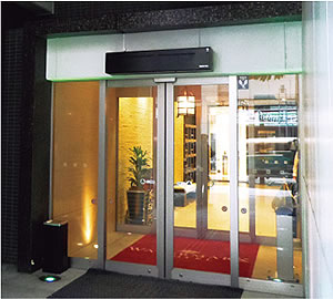 繁華街のなかに立地する当ホテルは、オープン当初から周辺の飲食店から飛んでくる虫への対策として、防虫エアカーテンを導入しました。