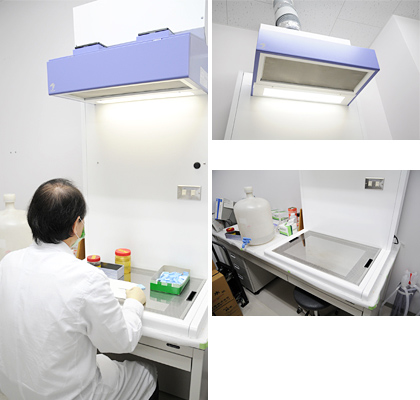 2010年4月に開催された病理学会の総会に、機器メーカーが出展するコーナーがありました。そこで、某メーカーの紹介を受けてトルネックスの卓上型プッシュプル換気装置を拝見しました。時期的に研究室の引っ越しを控えていて、移転先の狭い作業環境に合う換気装置を探していたんです。
