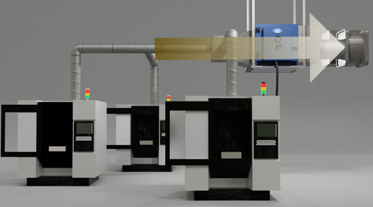 大風量で集塵処理ができるため1台で複数台の工作機械への接続ができ、導入費用を抑えられます。