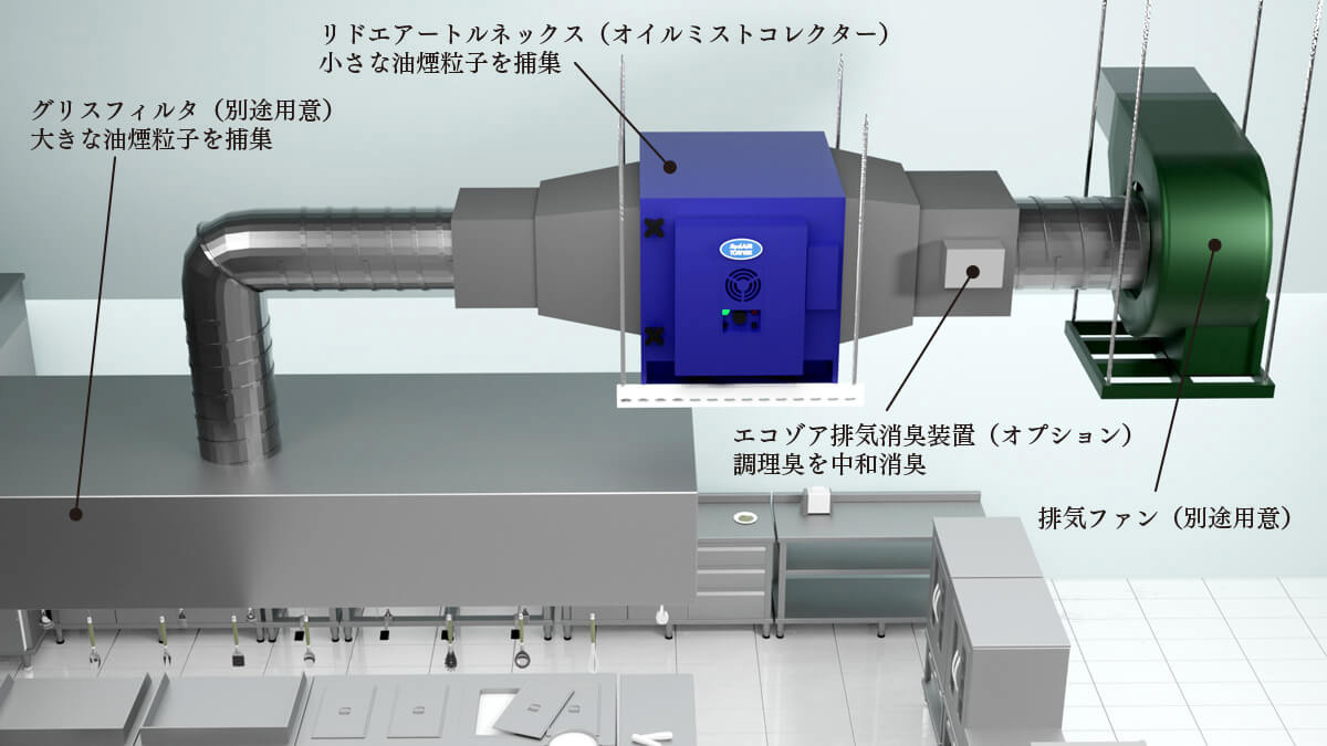 リドエアートルネックス導入により近隣からの厨房油煙のクレームがまったくなくなりました。